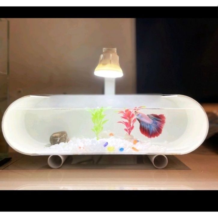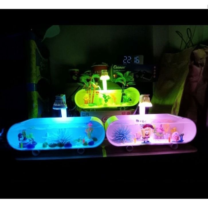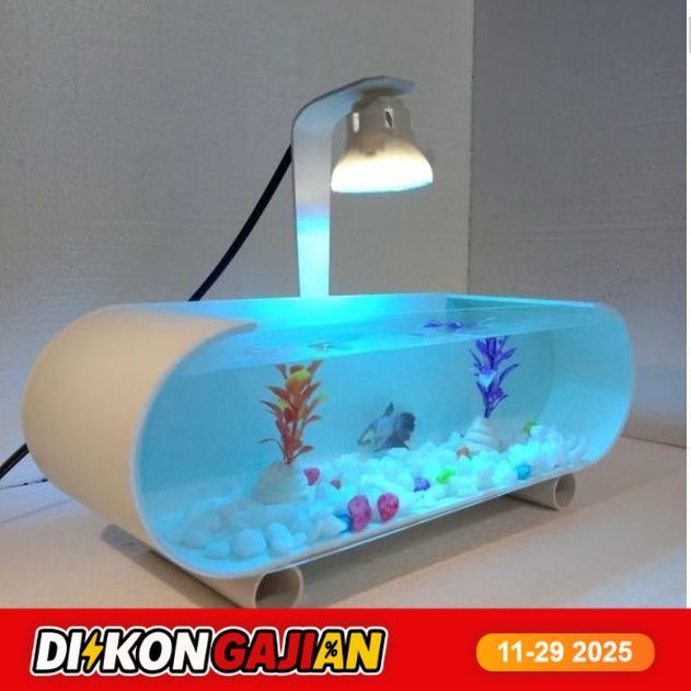 FREE ONGKIR_ AQUARIUM /AKUARIUM MINI IKAN HIAS FULLSET LAMPU LED DAN ACCESORIES