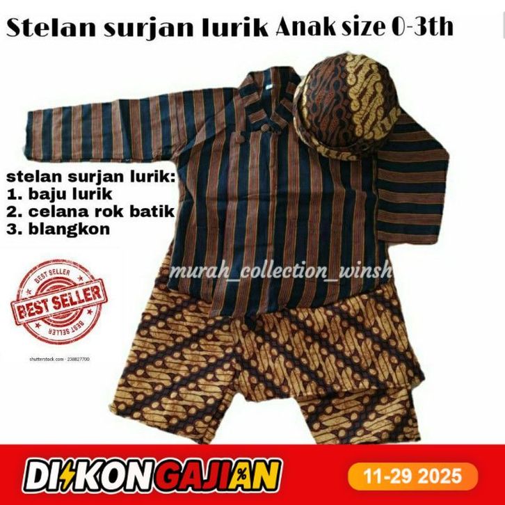 FREE ONGKIR_ BEST SELLERBaju adat anak / baju adat anak laki laki / baju lurik anak laki laki / baju jawa bayi laki laki