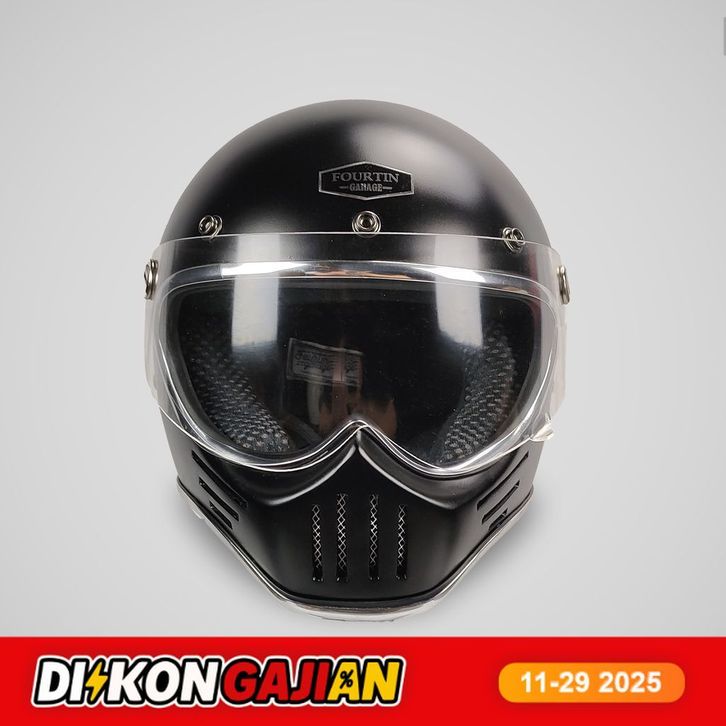 GRATIS ONGKIR Helm Custom Classic SIMPSON M30 FLAT VISOR Retro Vintage Klasik - Fourtin Garage