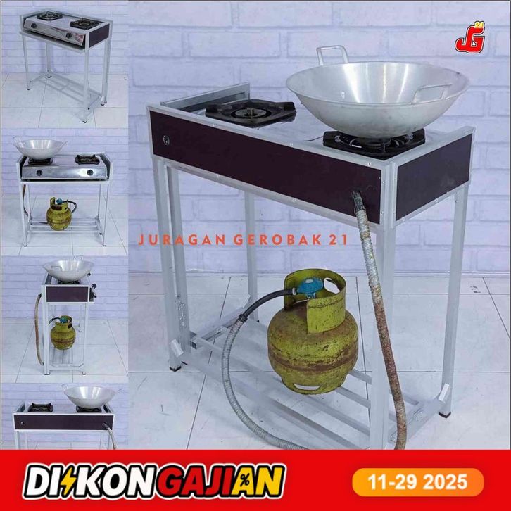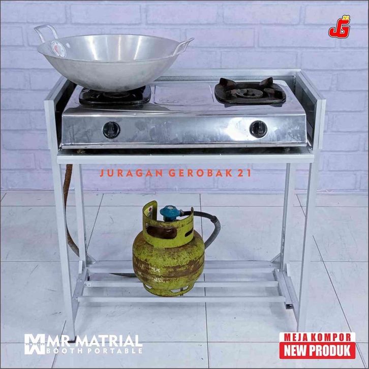GRATIS ONGKIR | Meja Lipat Kompor Gas 2 Tungku Aluminium Cocok Untuk Pendamping Booth Portable Gerobak Jualan