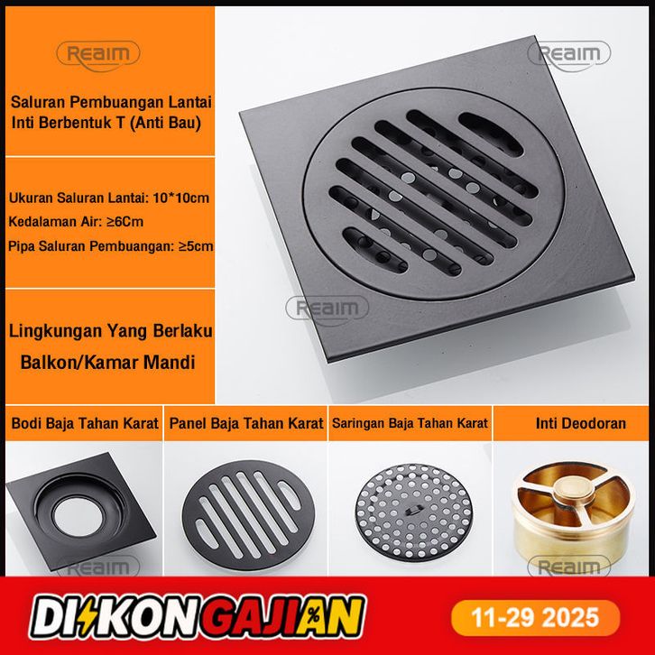 Smart Floor Drain Hitam/Floor drain Stainless anti serangga/banjir/kecoa/tikus SUS 304 Tile insert Saringan Got smart