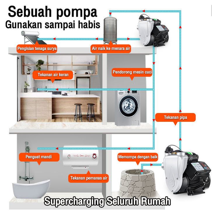 Pompa air Otomatis 250W Mesin Pompa Air Listrik Pendorong Tekanan Air Booster Pump Air Shower Water Heater Booster Pompa