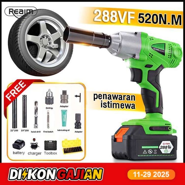 Reaim tools Cordless impact wrench 288V mesin buka tutup baut 288 volt impek impak impect wrench