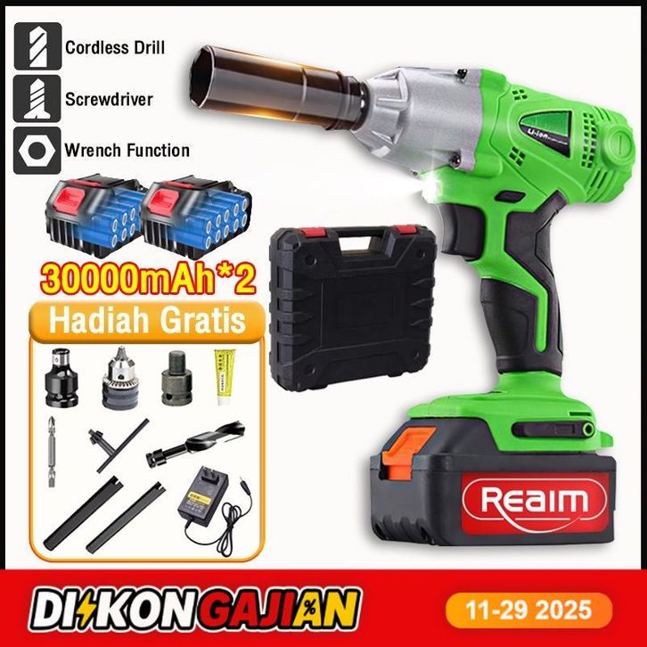 Reaim 13MM Cordless Impact Wrench 2 Baterai 520N.M Impact Baterai Mesin Bor Impact batre Bor Obeng Kunci Model ddbs001