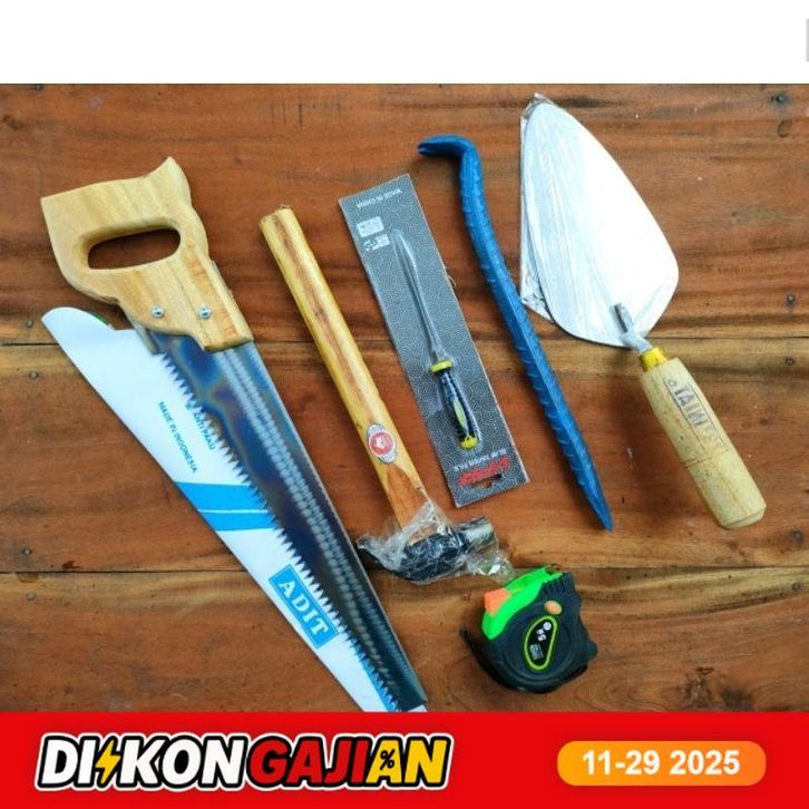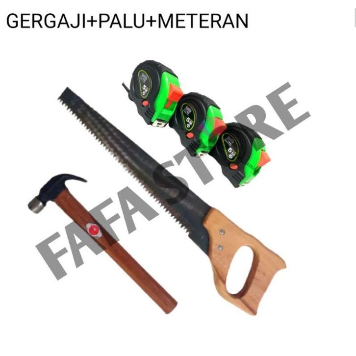 FREE ONGKIR_ PAKET TUKANG -Gergaji kayu baja asli siap pakai -Palu kambing -Linggis mini -Meteran viper