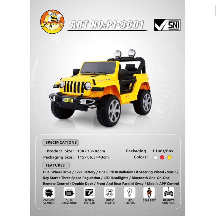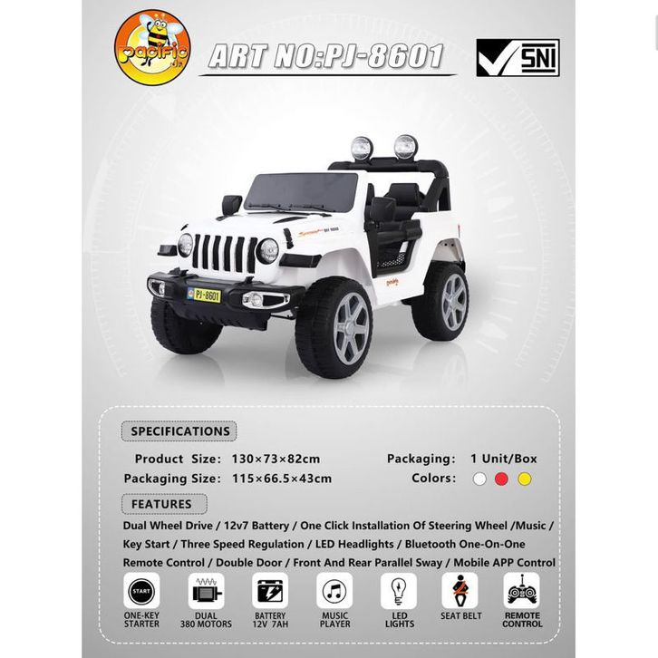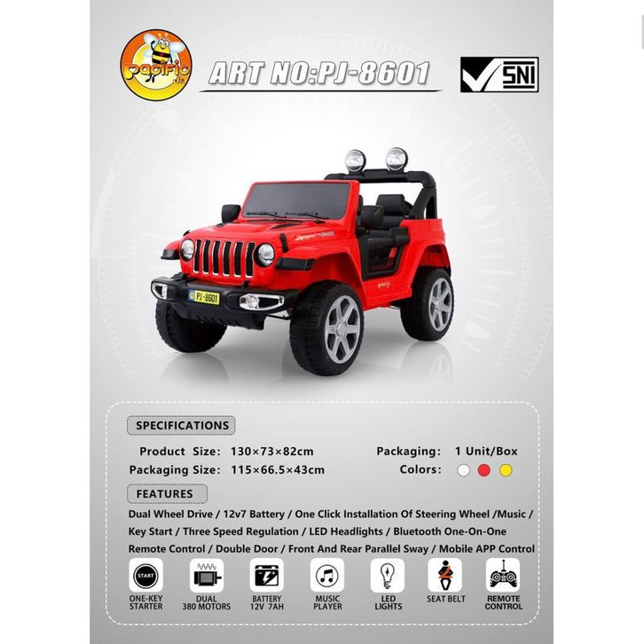 GRATIS ONGKIR Mobil Aki Mainan Anak Jeep Rubicon PACIFIC PJ8601 PJ-8601
