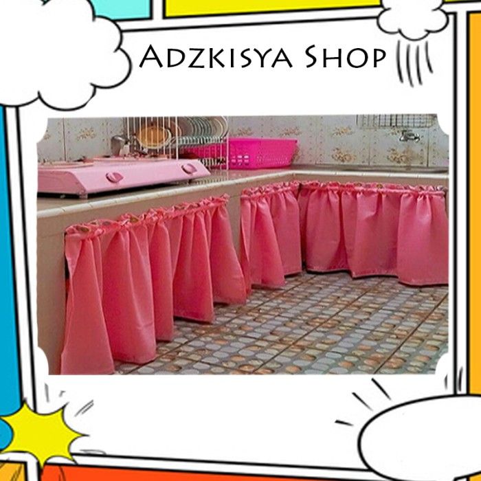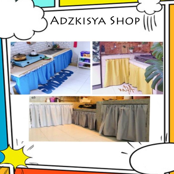 WATERPROOF Polos gorden kolong dapur tirai waterproof anti air - Putih L50cm x T75cm