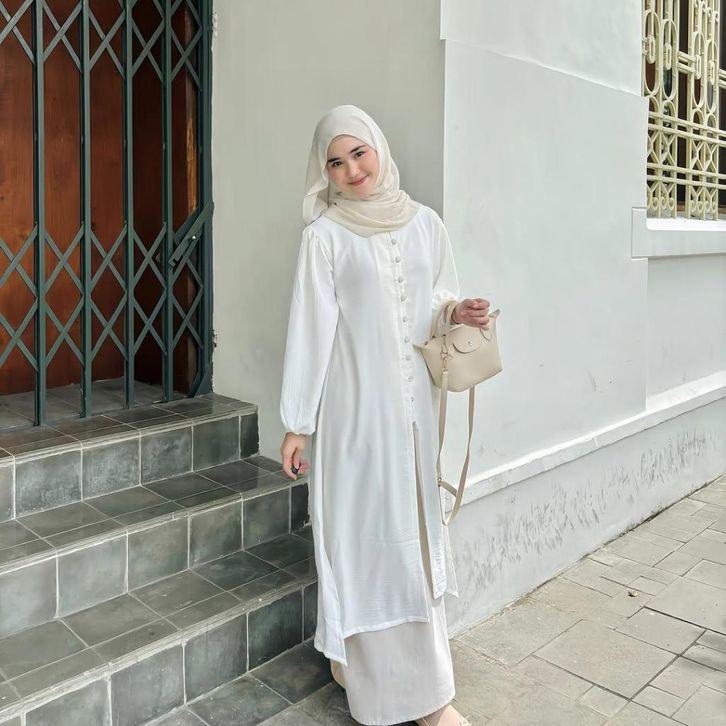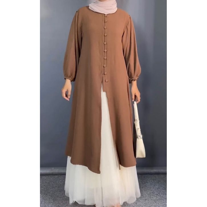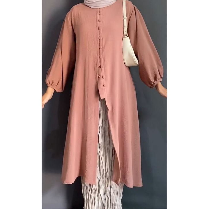 TUNIK MIDI DRESS MUSLIM TUNIC POLOS DRESS MUSLIM SIMPLE TUNIK WANITA MUSLIM MIDI DRESS KOREA DRESS CRINKLE RAYON KATUN