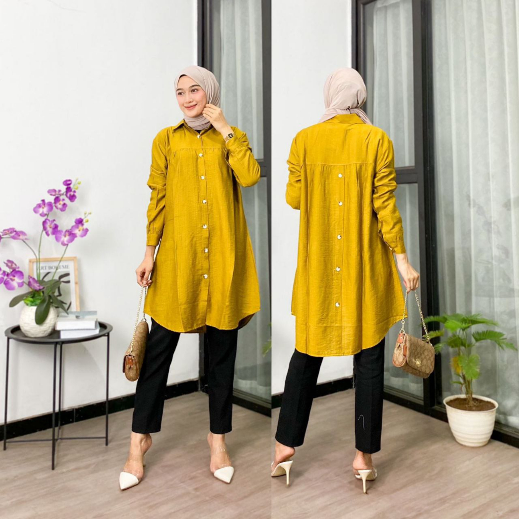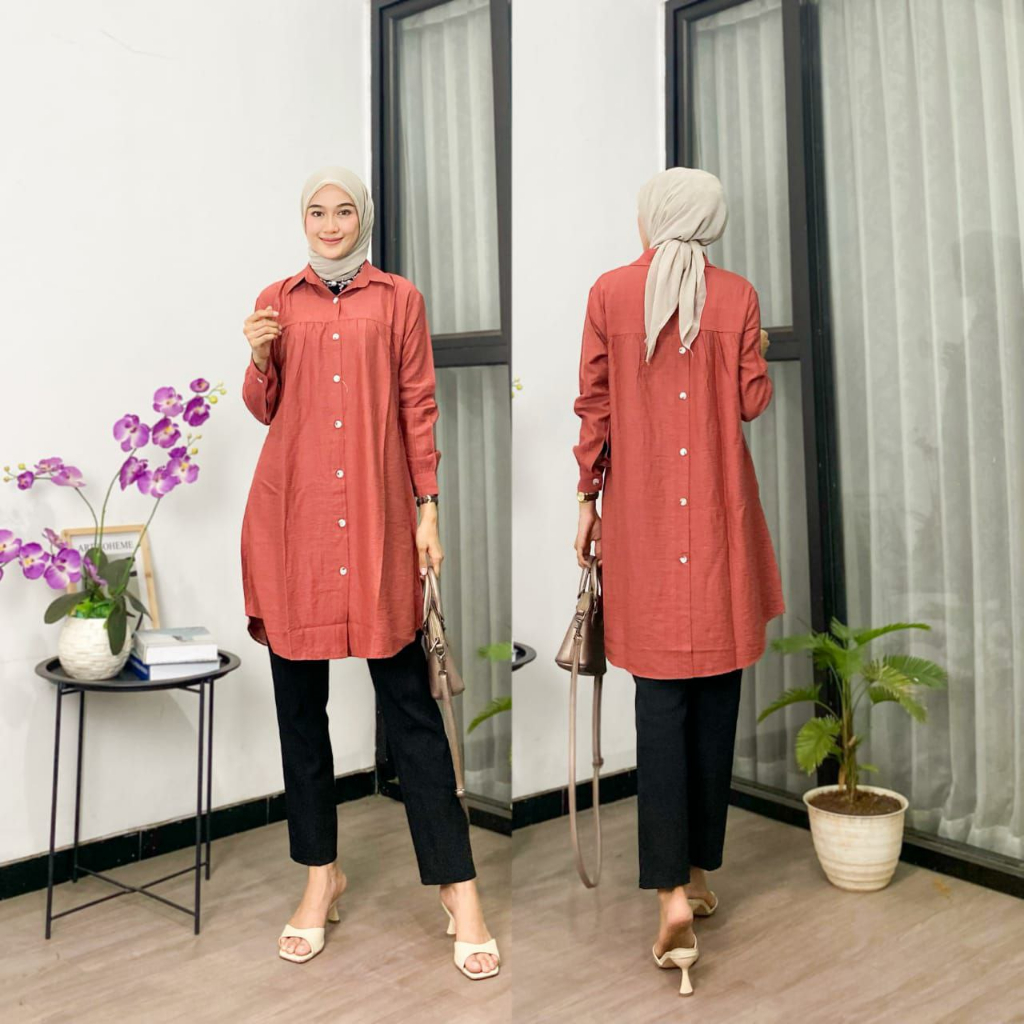 Zella Tunik polos polo linen kancing depan belakang|| kemeja wanita polos tunik pololinen