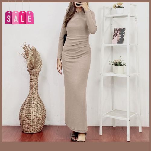 ORINA DRESS KNIT PREMIUM BASIC KNIT SLIM - DRES KOREAN STYLE LONG DRESS KOREA - DRESS PANJANG WANITA RIB KNIT - DRESS BO