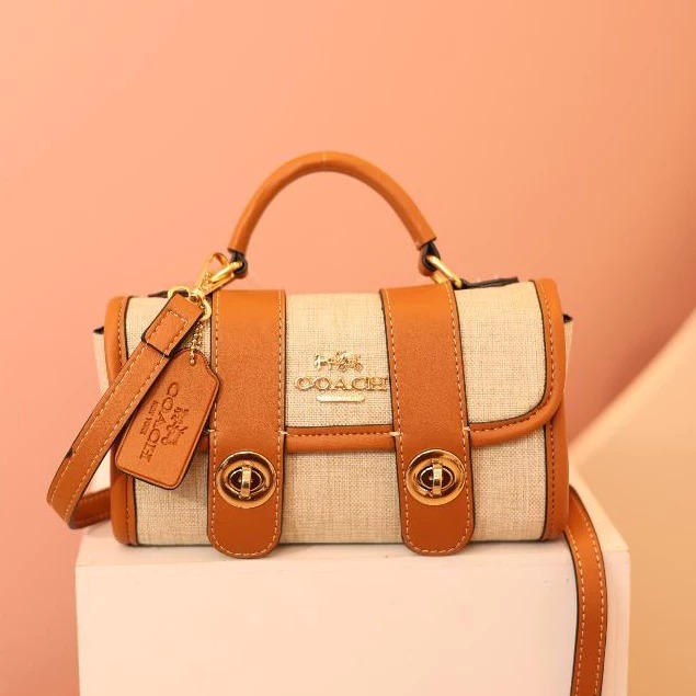TAS SELEMPANG WANITA COACH CRAMBRIDGE BAG TAN COMBINATION FULL SET + FREE COVER BAGS