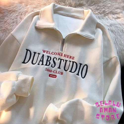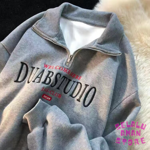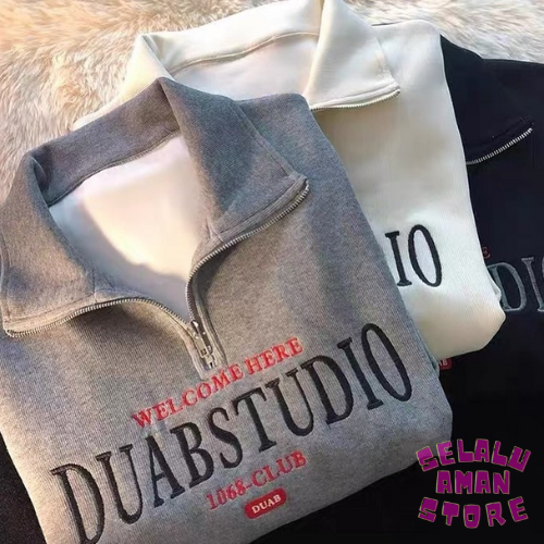 Sweater Pria Wanita Half Zipper Duabstudio Collar Sweater Pria Premium Outerwear Jaket Unisex Wanita Pria Korean Style