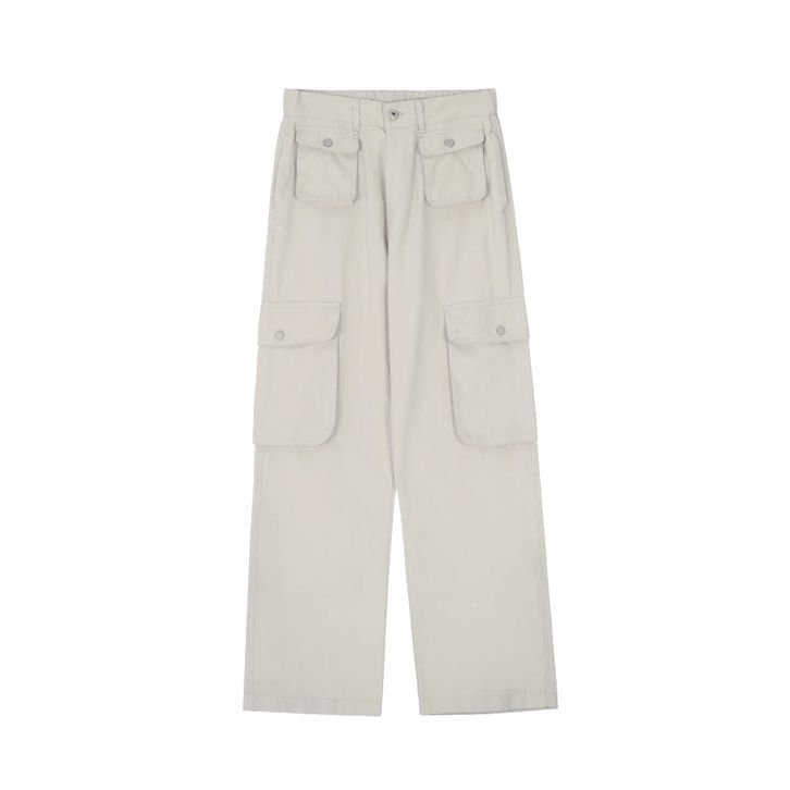 Putih Krem Highwaist Cargo Celana Jeans Berbahan Denim Premium Quality Stylish Lembut Nyaman Saat Di Pakai