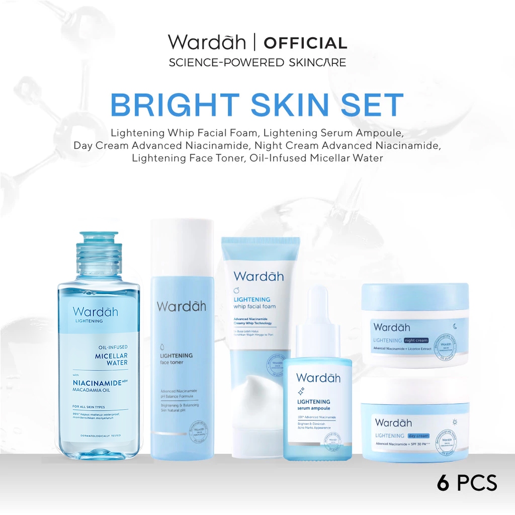 Wardah [6 pcs] Paket Skincare Solusi Masalah Kulit All Series - Face Wash Moisturizer Day Cream Serum Toner Essence Nigh