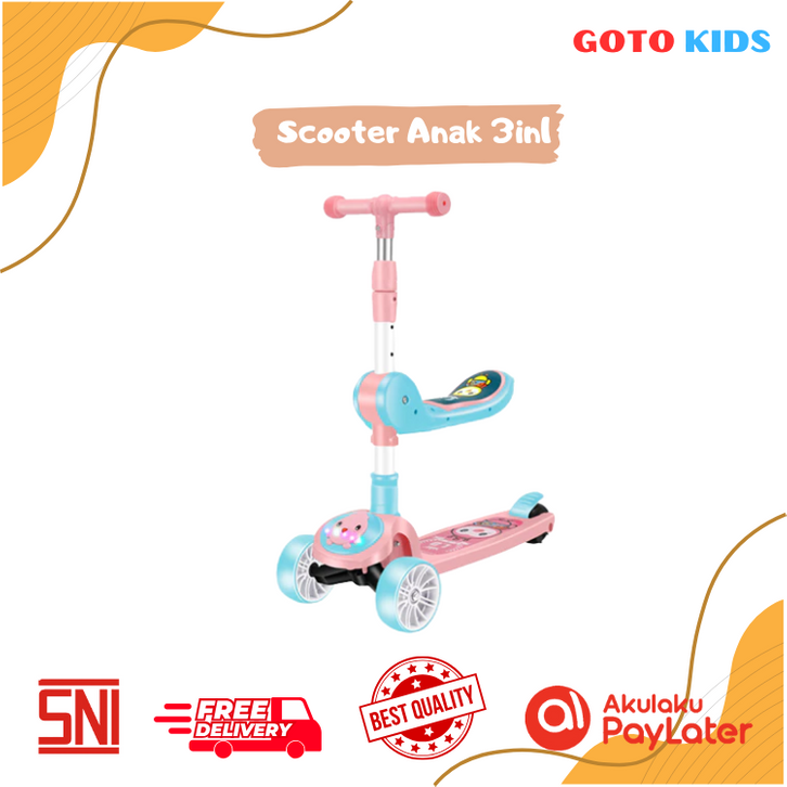 Skuter Anak SNI Roda 3 in 1 Scooter Bird Kickboard Otoped Lampu Led Kursi Dan Musik