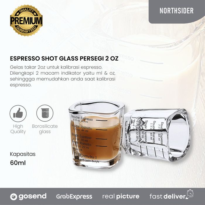 Espresso shot glass persegi 2 oz - gelas ukur kopi - sloki