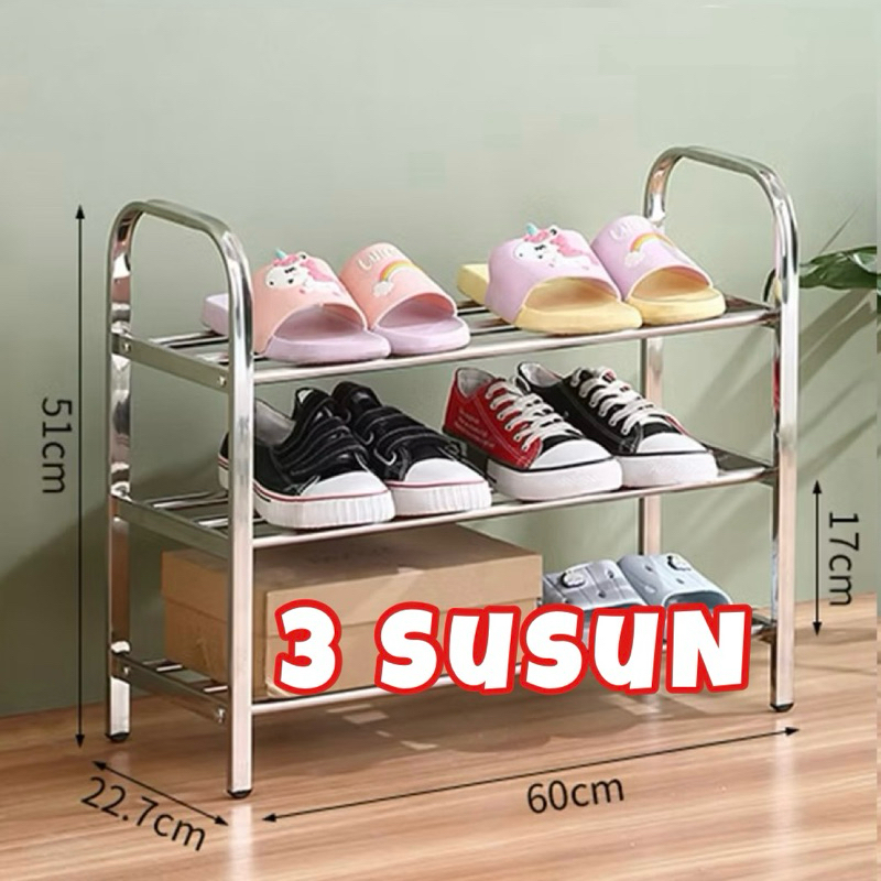 RAK SEPATU STAINLESS ANTIKARAT 5/4/3 SUSUN