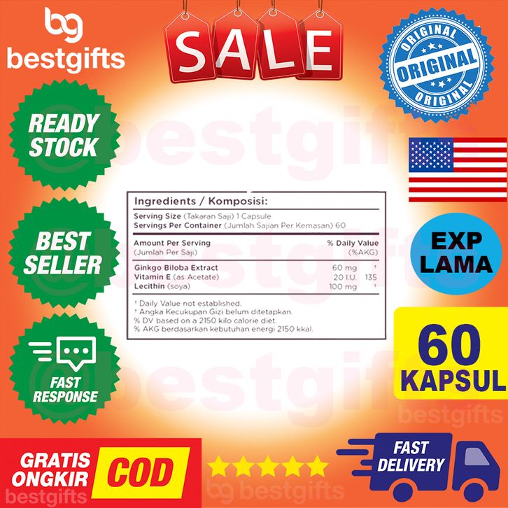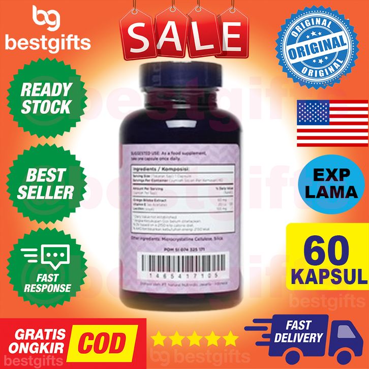 WELLNESS GINKGO GINKO GINGKO GINGO BILOBA FORMULA VITAMIN DAYA INGAT SARAF OTAK VERTIGO 60 KAPSUL