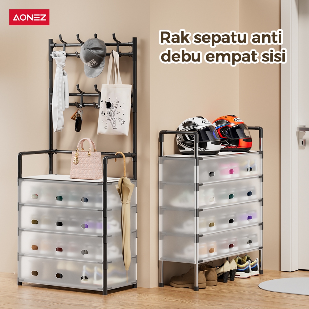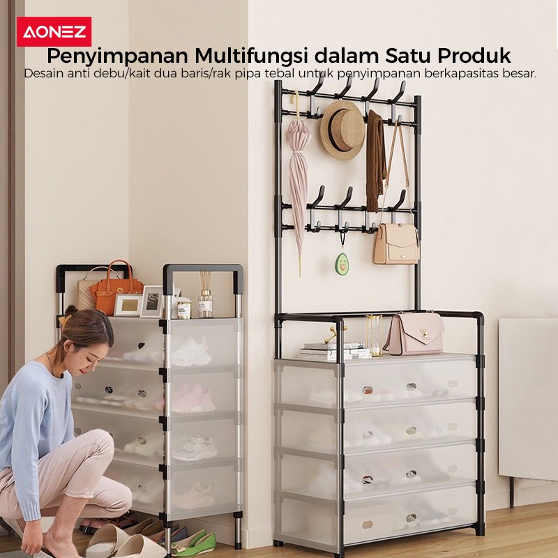 AONEZ Rak Sepatu Tertutup Anti Debu Serbaguna/Gantungan Tas Pakaian/ Rak Sepatu Besi Kuat Tebal/Rak Sepatu Susun/Rak