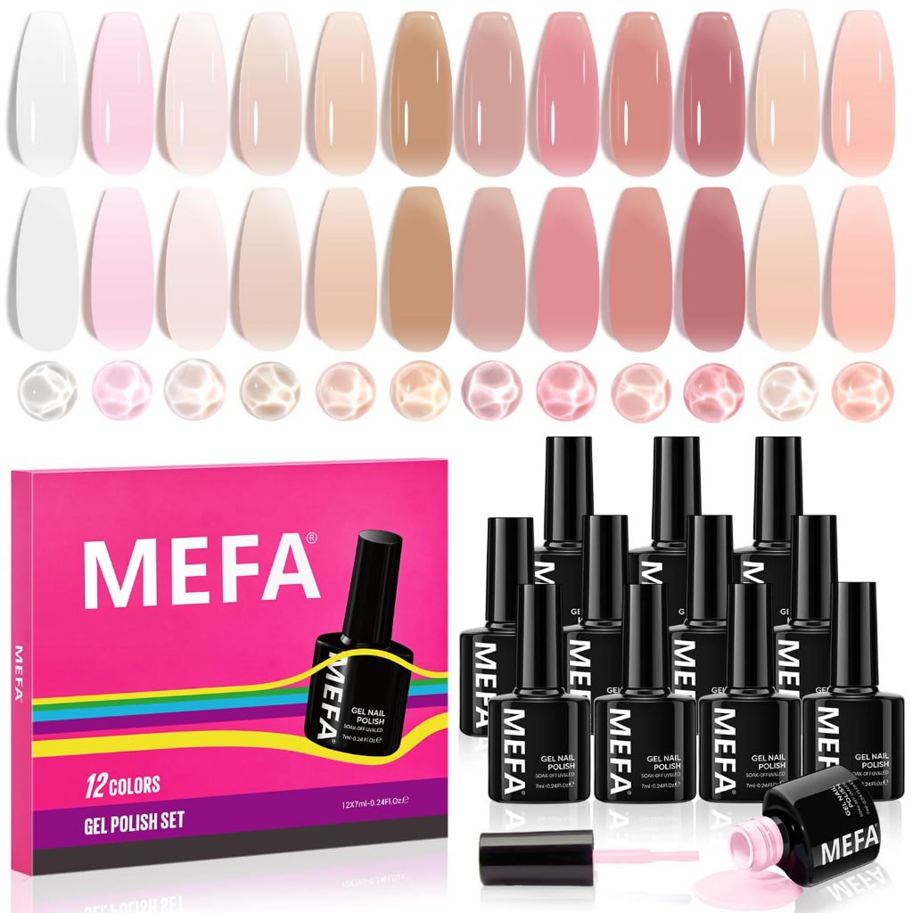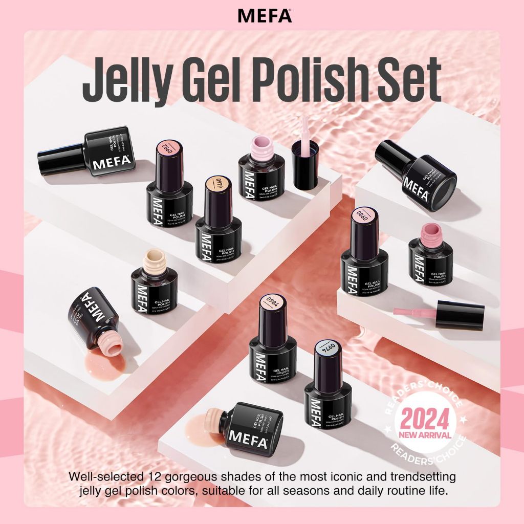 MEFA JELLY GEL NAIL POLISH SET 12 WARNA JELLY NUDE PINK GEL POLISH MILKY WHITE SHEER PINK NAIL POLISH GEL NEUTRAL