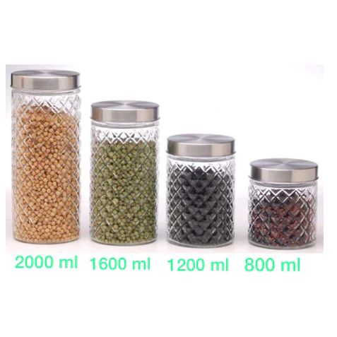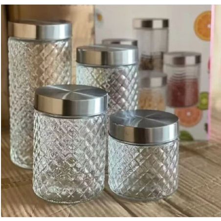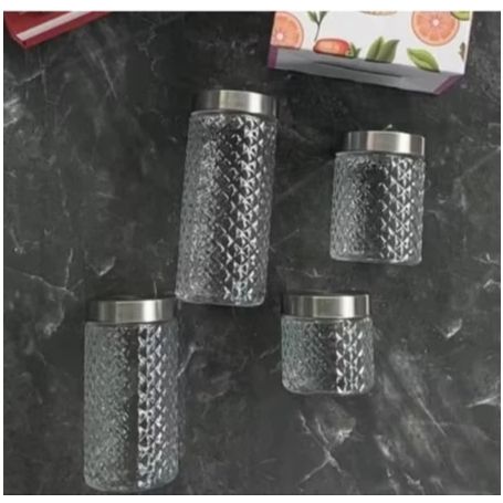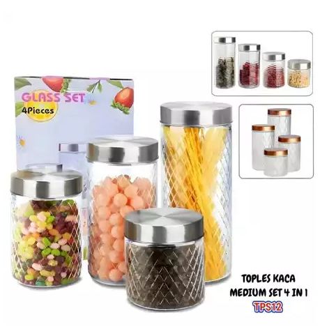Toples Set Kaca Bening Glass 4 Pcs Tempat Penyimpanan Kue Lebaran Aesthetic High Quality