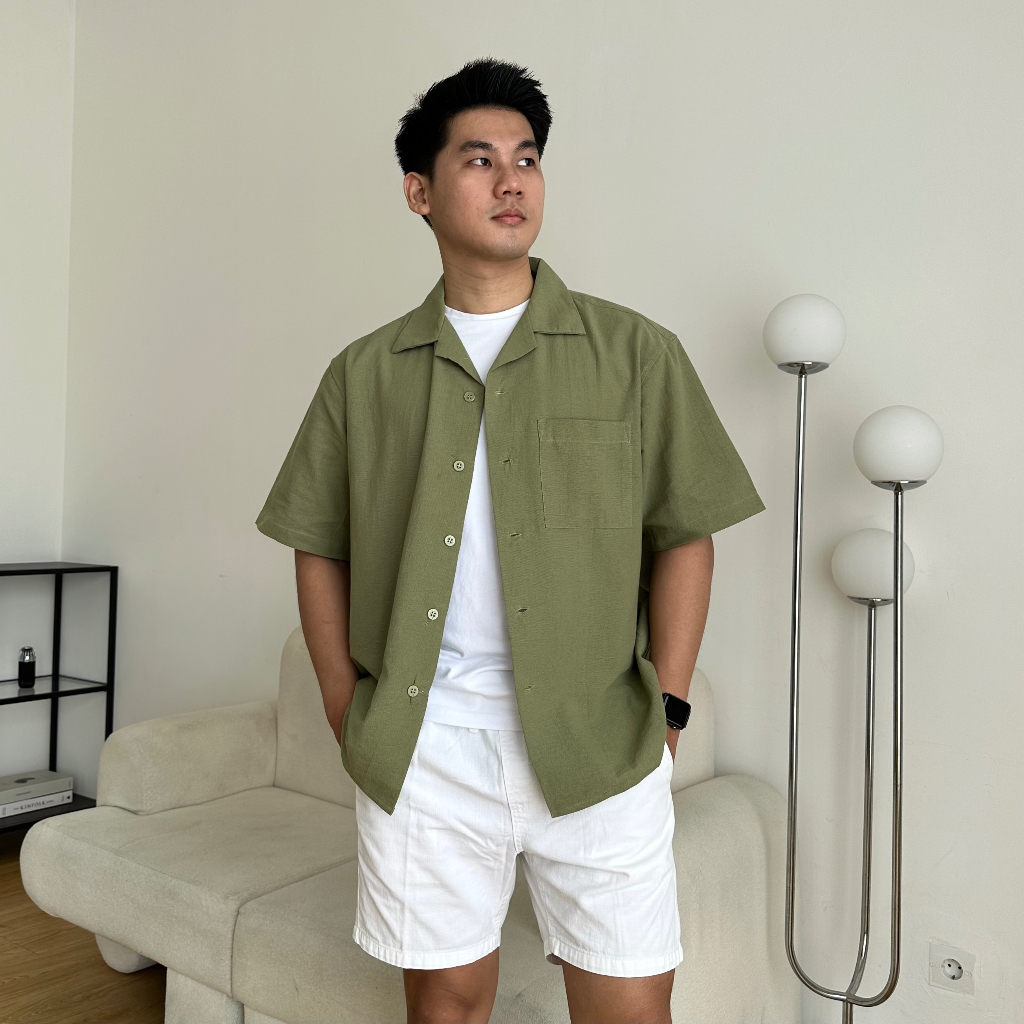 Islamic wear | Kemeja Linen Bowling Polos Pria Kerah Terbuka Lengan Pendek | 81