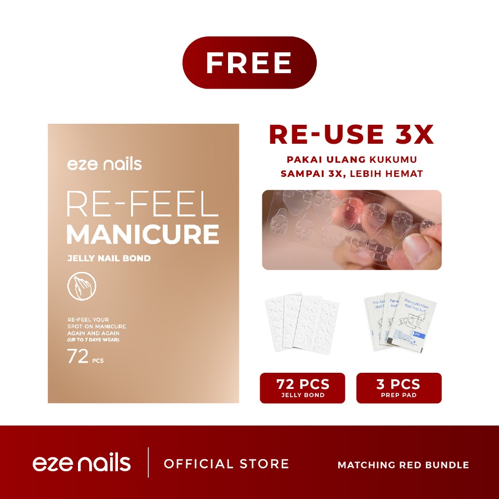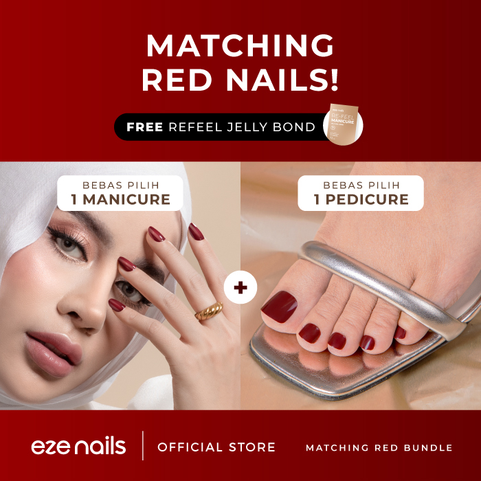 MATCHING RED NAILS BUNDLE (1 Kuku Tangan + 1 Kuku Kaki + FREE 1 Refeel Manicure Jelly Bond) Kuku Palsu Tempel