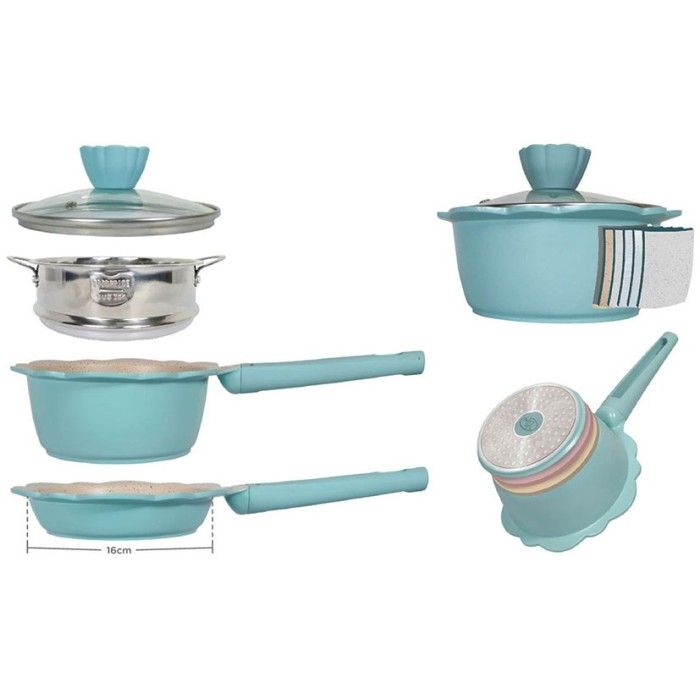 set alat masak CW001 Baby Safe Cookware Set Panci Kukus Bubur Bayi Panci Marble 3in1
