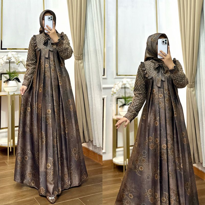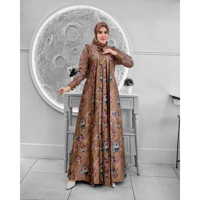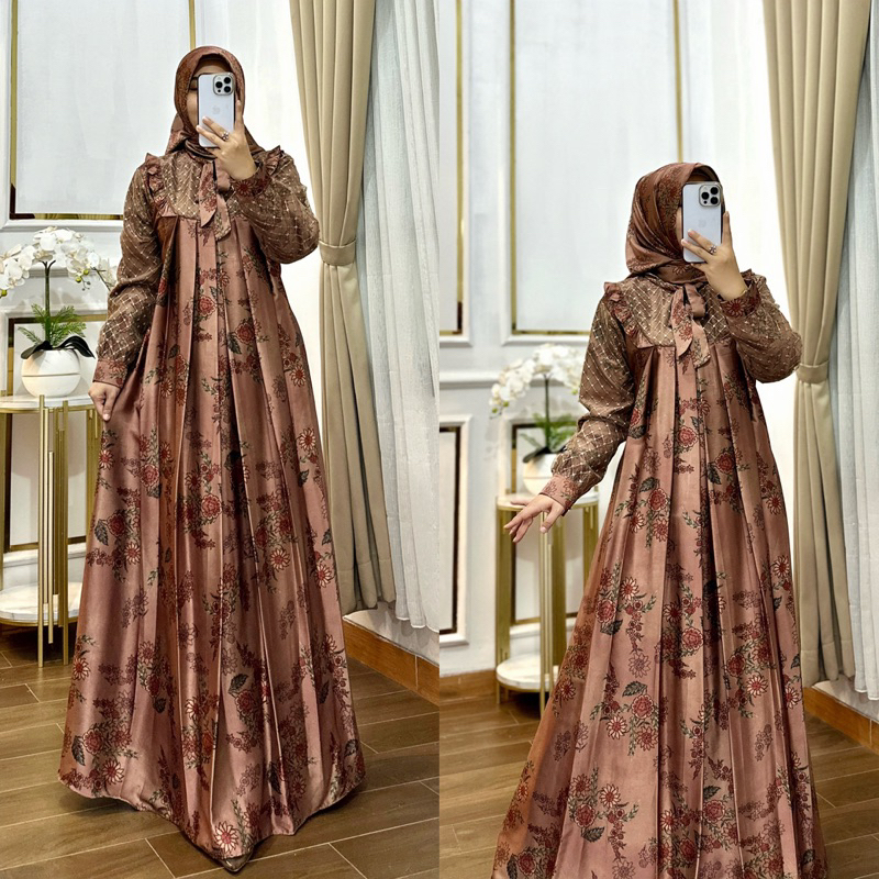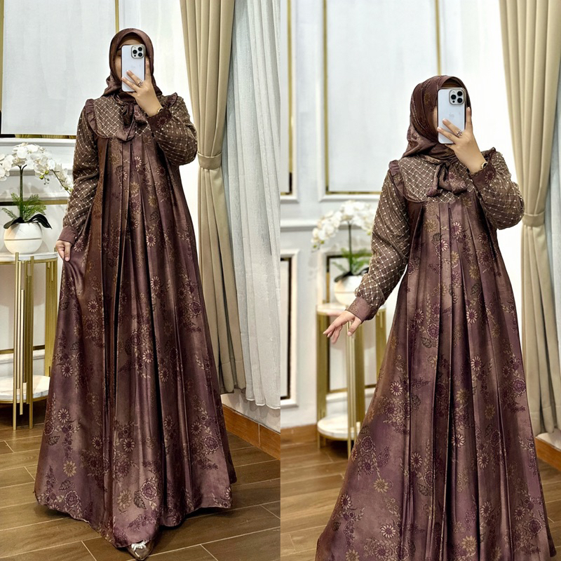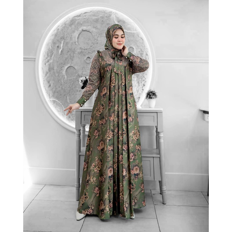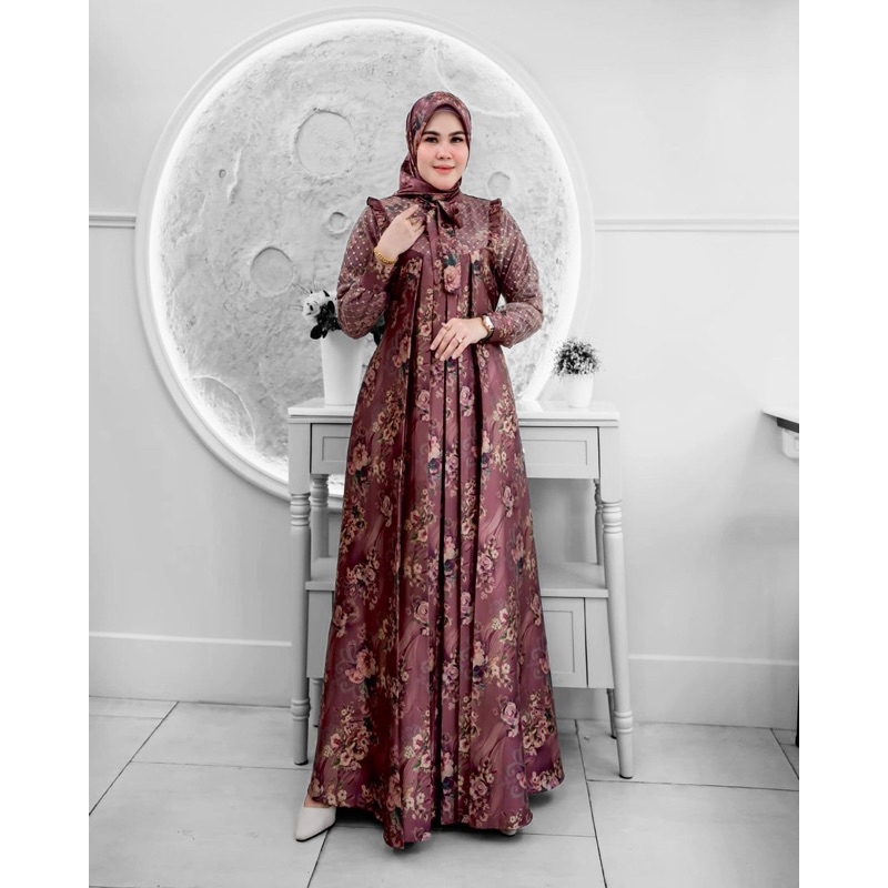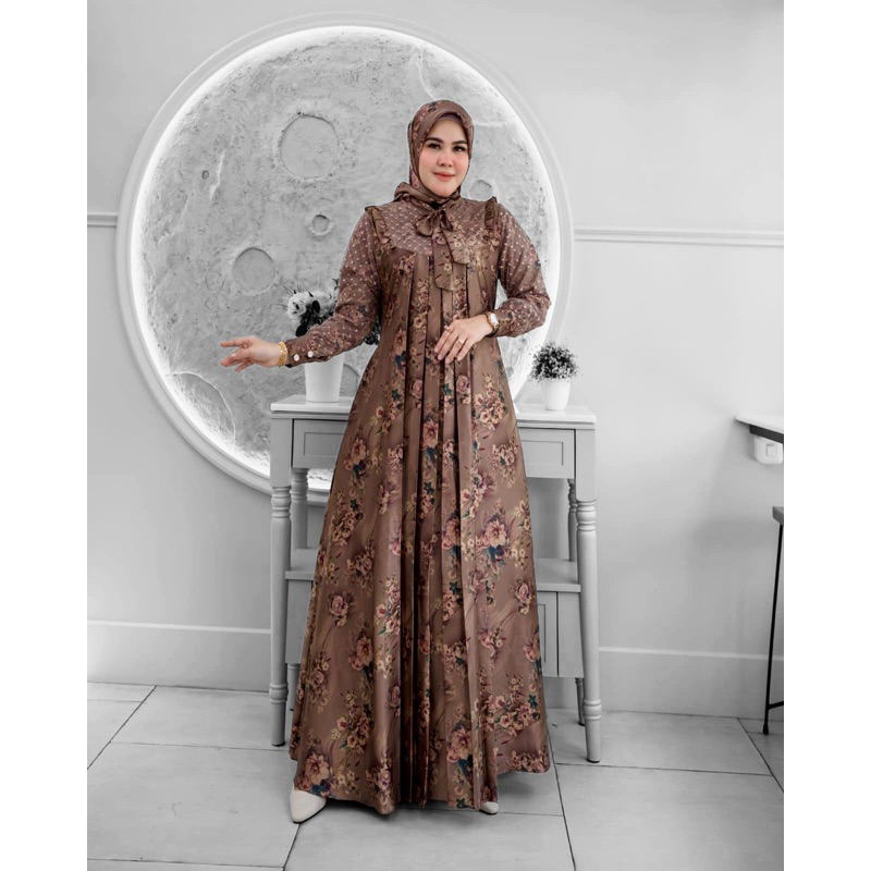 GAMIS MOTIF BUNGA SET HIJAB TERBARU ARMANY SILK PREMIUM DRESS PESTA MEWAH ELEGAN