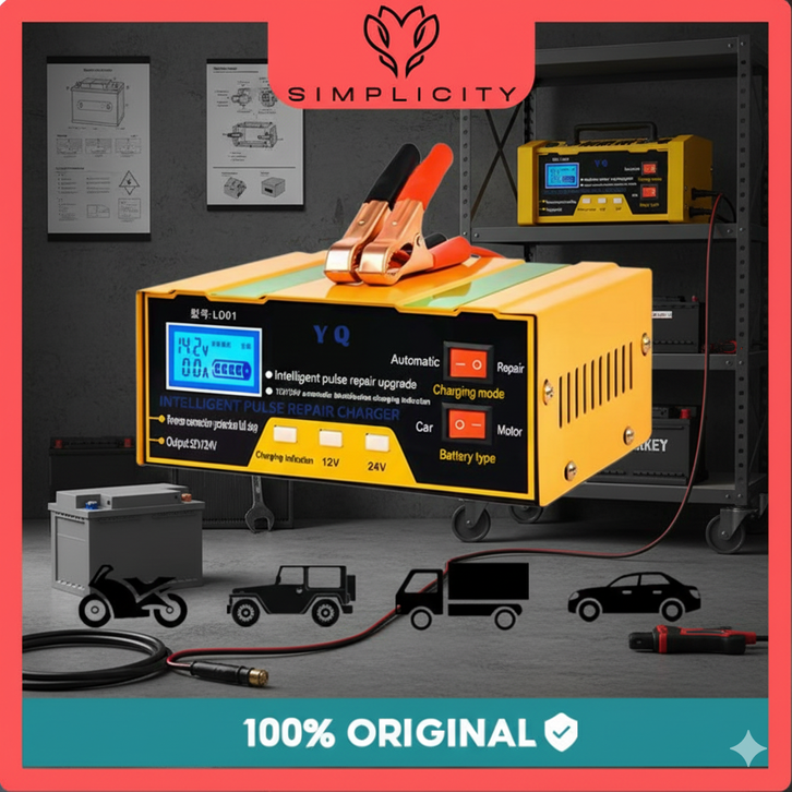 Simplicity Charger Aki Otomatis Smart Intelligent Auto Repair Mobil Pengisi daya 12v24v Charger Otomatis