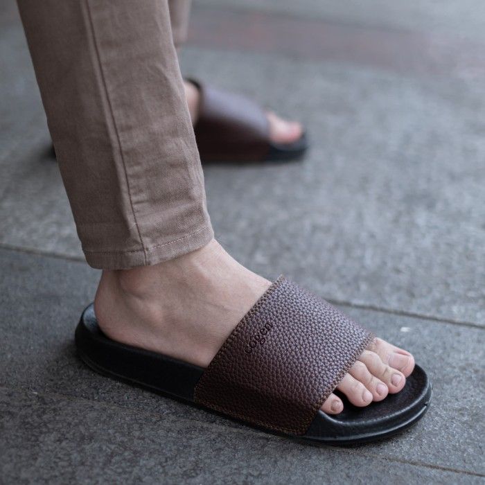 Sandal Pria Slop Sendal Slide Cowo Cogen Leather Kulit Copenhagen - Cokelat 39