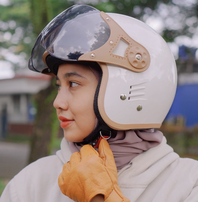 Helm Retro BRH 1 Hijab Friendly Half Face Bipplast Fantasy Helem Wanita Cepol SNI