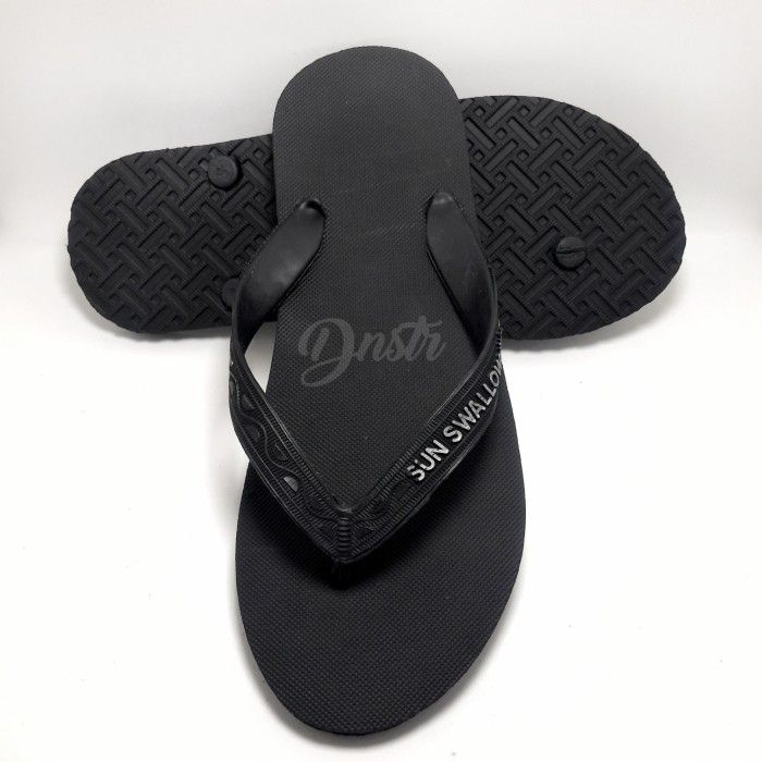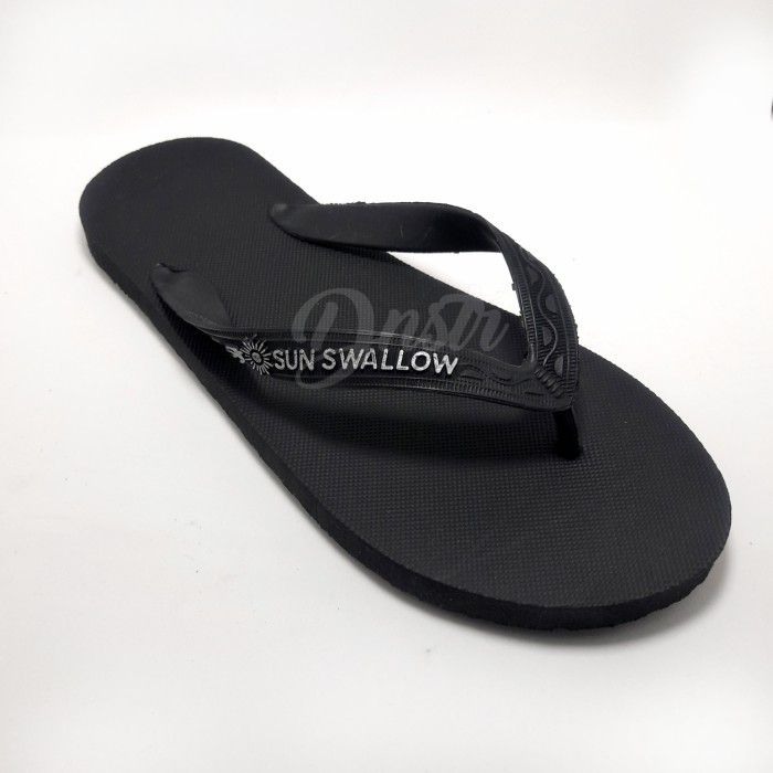 Sandal jepit pria sun swallow hitam full black ukuran besar 41 - 44 - Hitam 10.5 (40)
