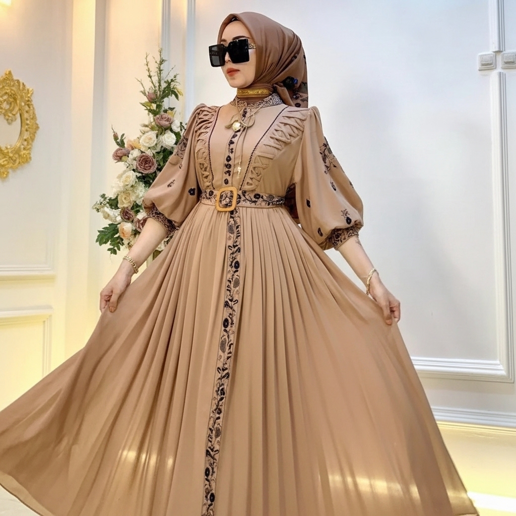 Baju Gamis Terbaru Dress BL Size M L XL XXL Bahan Ceruty Babydoll Bordir Wanita Kekinian Jumbo Pesta Mewah Elegan