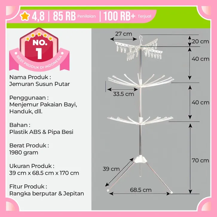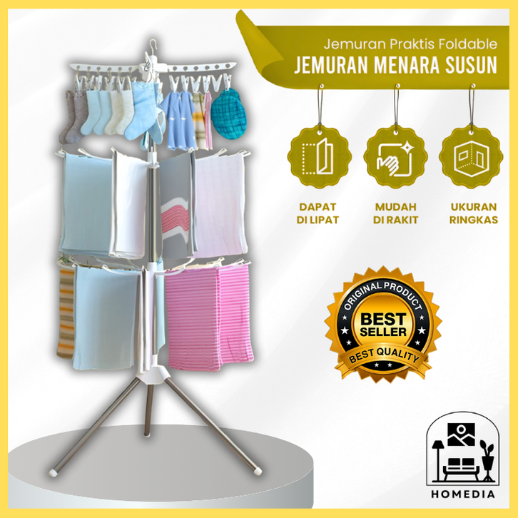 Jemuran Baju Menara Lipat Rak Jemuran Gantungan Baju Pakaian Bayi Foldable Hanger