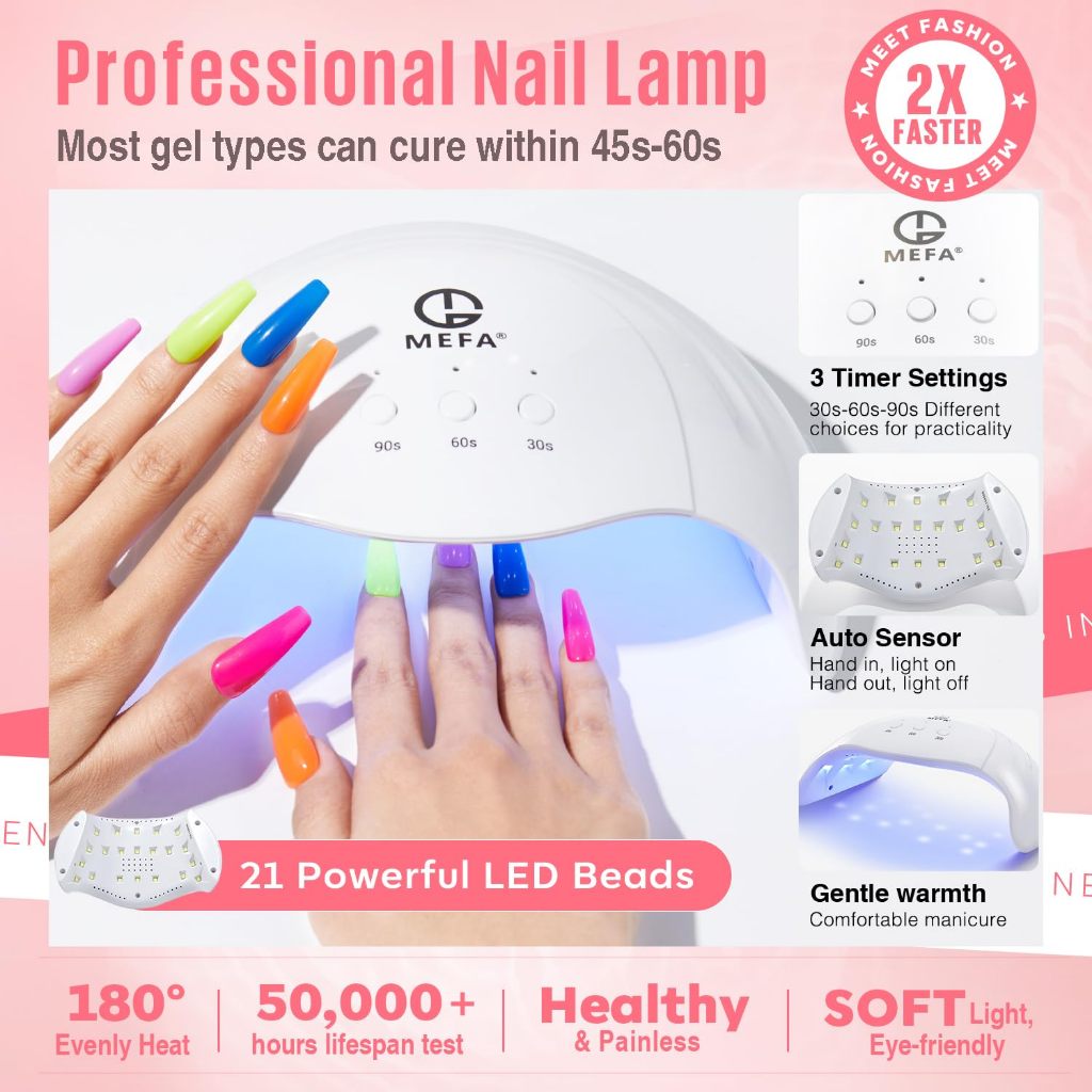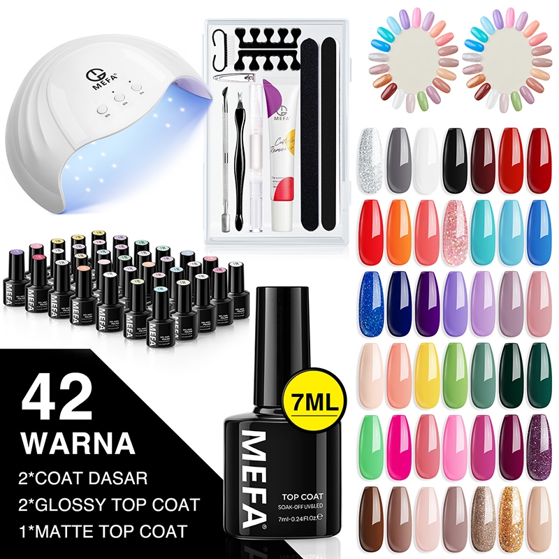 MEFA GEL NAIL KIT POLANDIA DENGAN UV LIGHT 42 WARNA 7ML, MUSIM SEMI, MUSIM PANAS, MUSIM GUGUR DAN MUSIM DINGIN GEL POLAN