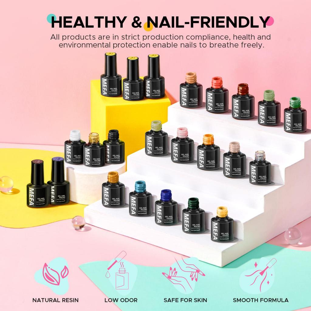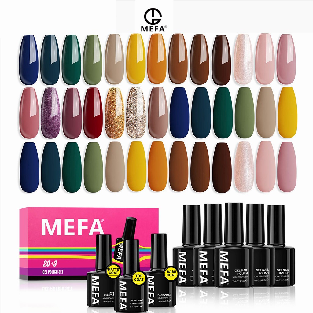 MEFA 23 PCS GEL NAIL POLISH SET, 20 COLORS NUDE PINK GLITTER ALL SEASONS COLLECTION SKIN TONE BUBBLE BATH GEL POLISH