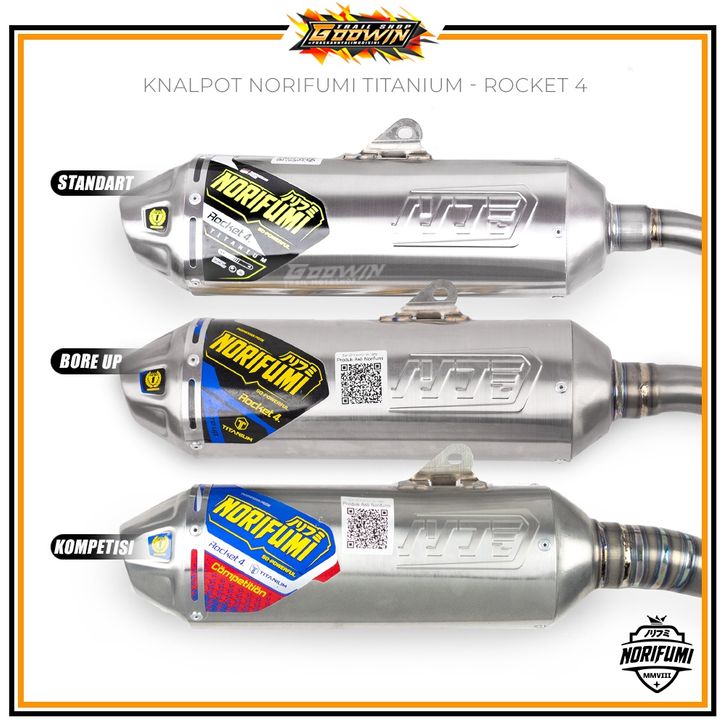 [Star] Knalpot Racing NORIFUMI ROCKET 4 TITANIUM KOMPETISI BORE UP SE KLX 150 BF DT/ KLX 140 BUILT UP CRF 150 L WR 155 R