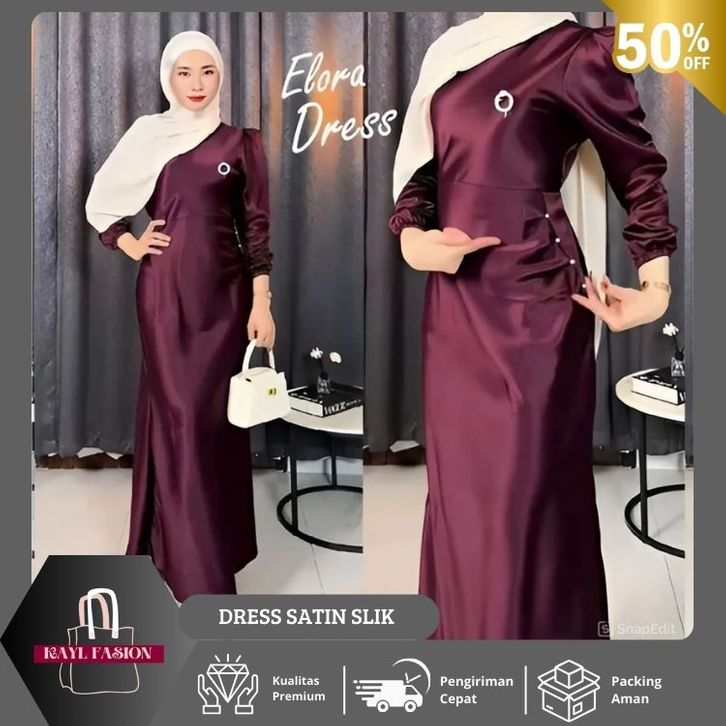 Elora Dress Satin Silk Premium Wanita Kondangan Muslim Gamis Produk ORIGINAL BEST SELLER