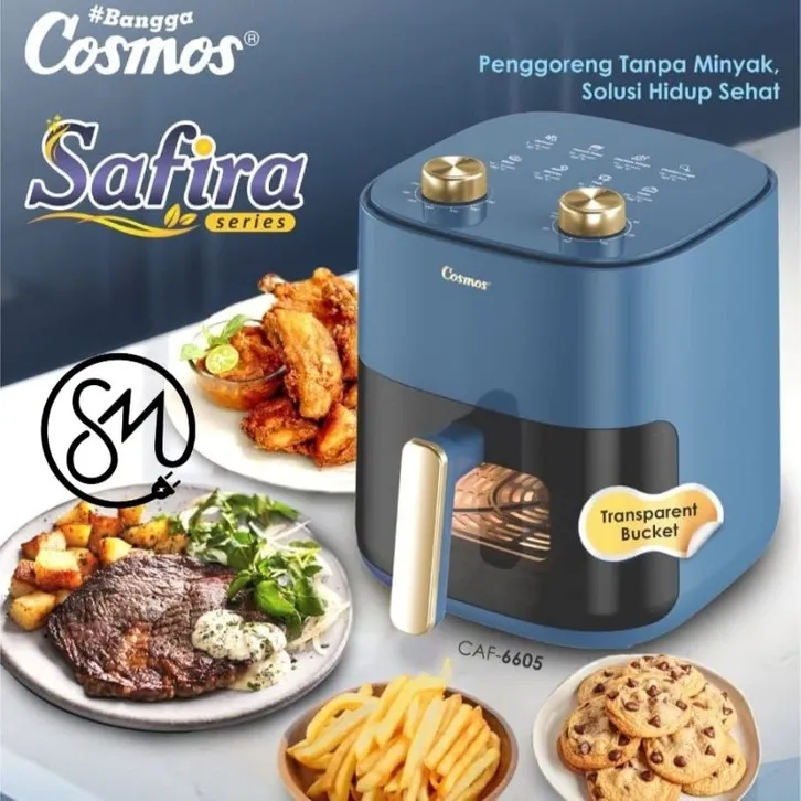 Cosmos CAF6605 - Air Fryer Digital 5L 800W 8 Menu Transparan Blue New Arrival Terbaru