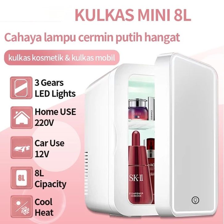 4L Kulkas Skincare Mini Fridge /Portable Cermin Skin Care Minifridge Kosmetik Makanan