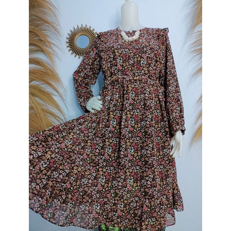 Tunik Ceruty Babydoll Rempel Serut Samping Motif