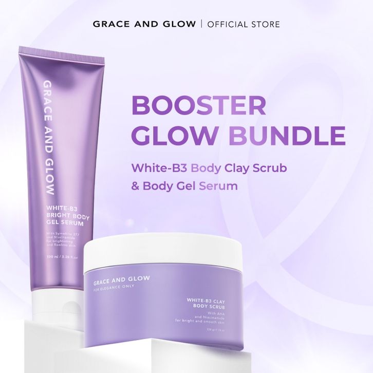 PAKET GLOWING BOOSTER GLOW BUNDLE GRACE AND GLOW WHITE-B3 BODY GEL SERUM MELEMBUTKAN DAN MENCERAHKAN TUBUH WITH NIACINAM