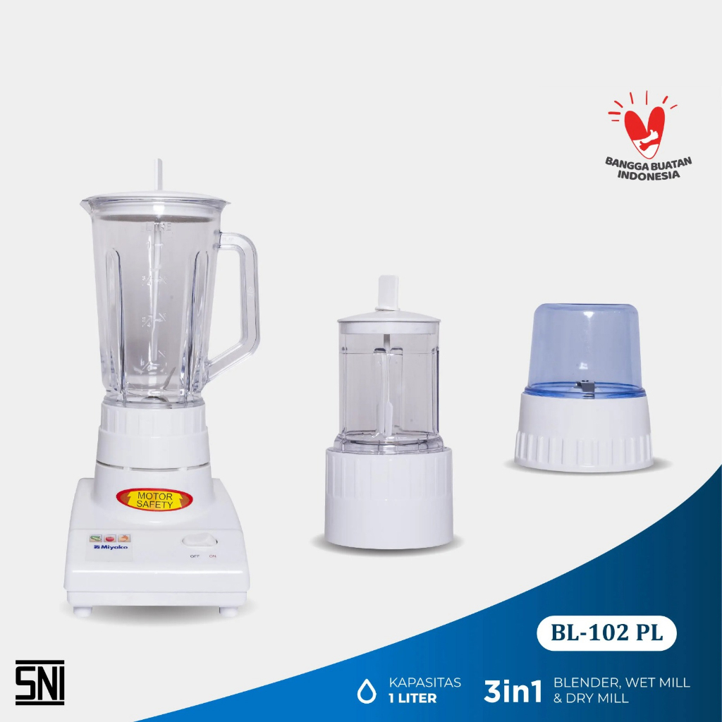 Blender Miyako BL102PL Plastik - 3 in 1 Dry mill & wetmill - Putih 1 Liter