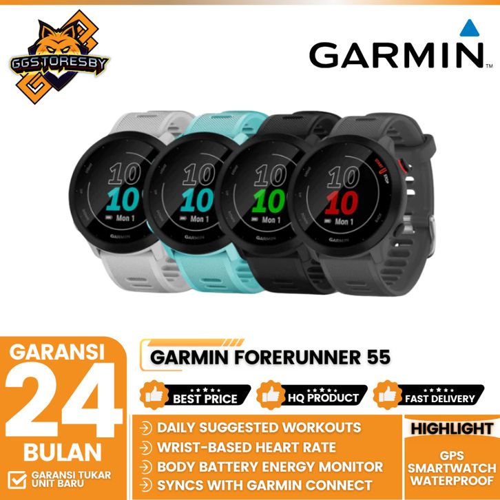 Smartwatch Garmin Forerunner 55 – GPS, Tahan Air 5ATM, Layar 1,04", Cocok untuk Lari & Fitness, Garansi Resmi