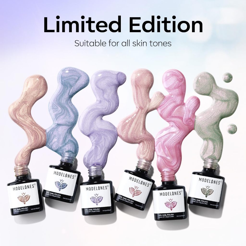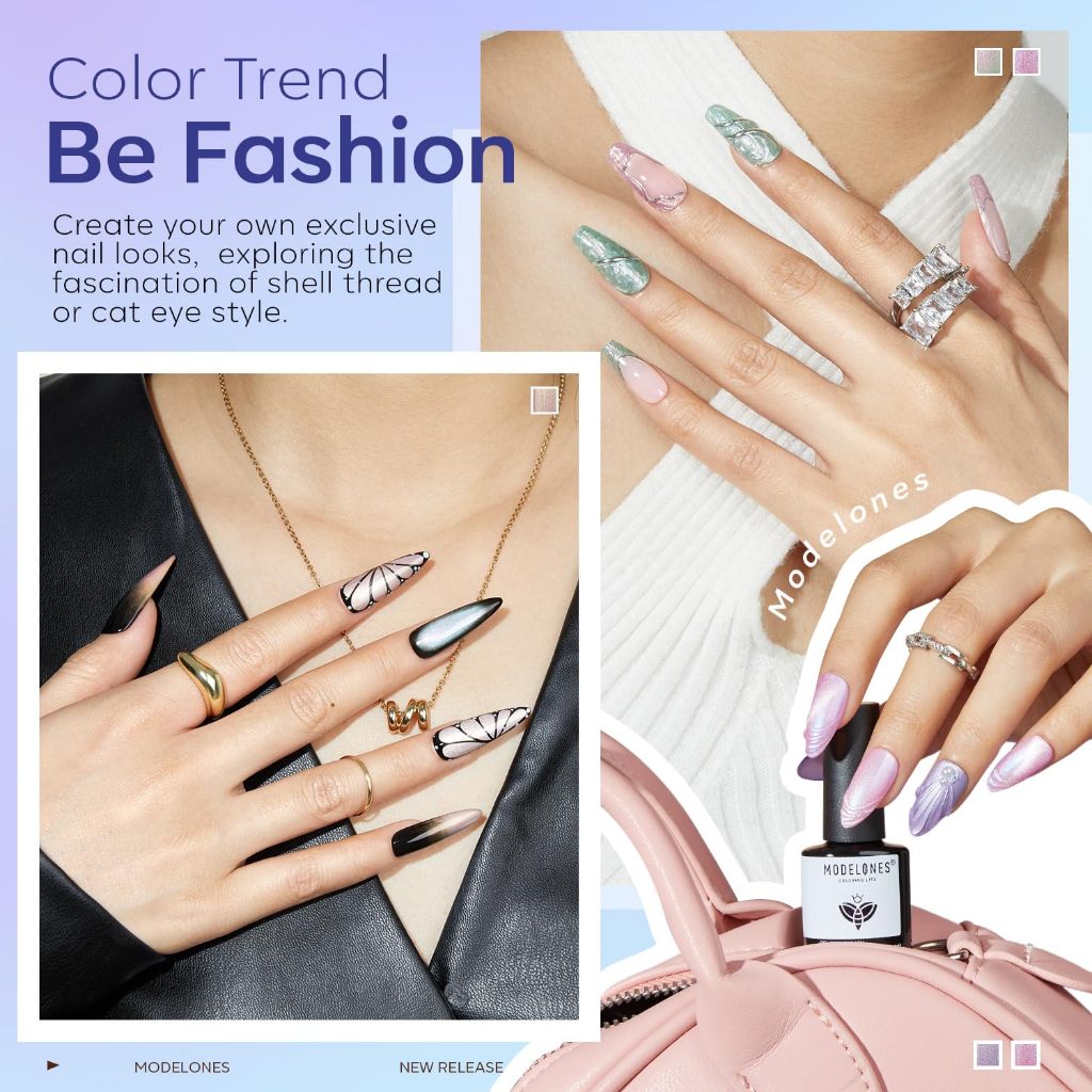 MODELONES PEARL GEL NAIL POLISH, 6 COLORS SHIMMER CAT EYE MAGNETIC NAIL DRAWING SET WITH MAGNET, IRIDESCENT MERMAID