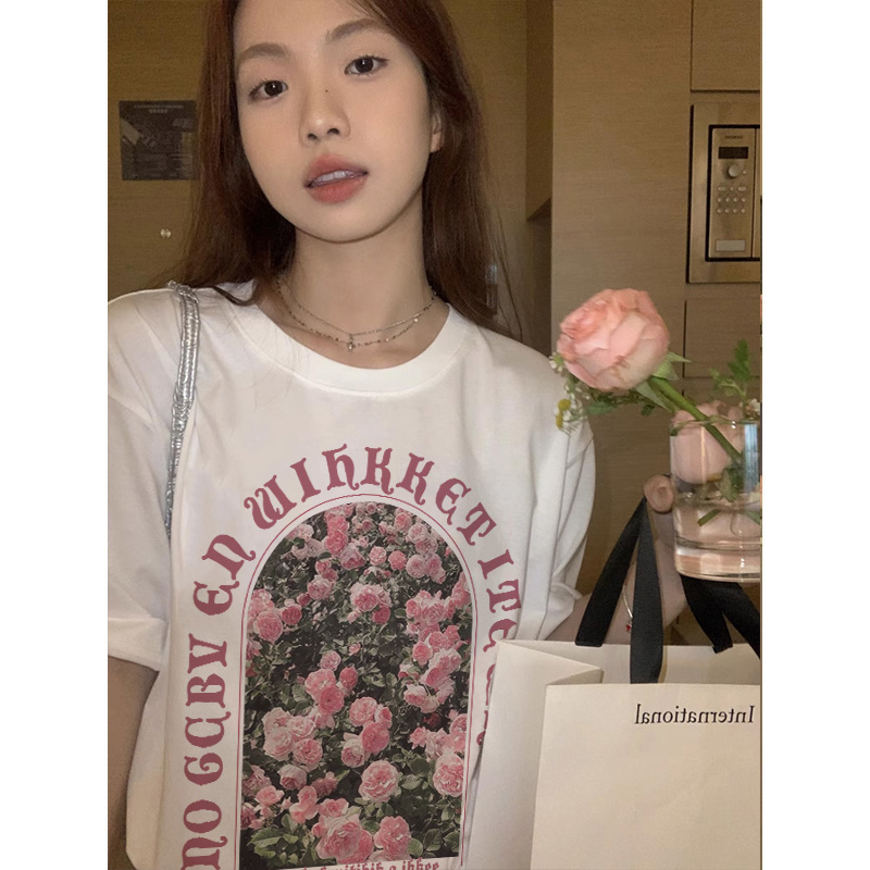 Baju Kaos Atasan Lengan Pendek Wanita Kaos Oversize Terbaru Tshirt Pink Flowers