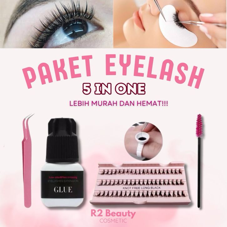 Paket Eyelash Extension Lengkap Eyelash Extension 1 Set PAKET EYELASH EXTENSION KNOT FREE EXTRA LENTIK 5in1