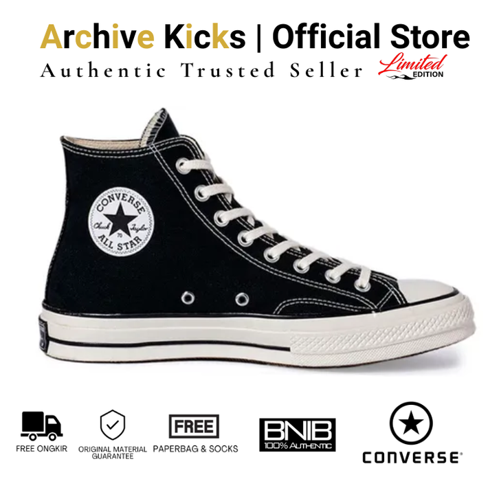 Converse Original Official Store Sepatu Pria Original Converse Chuck Taylor 70s High Black Egret Authentic BNIB