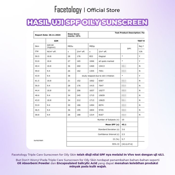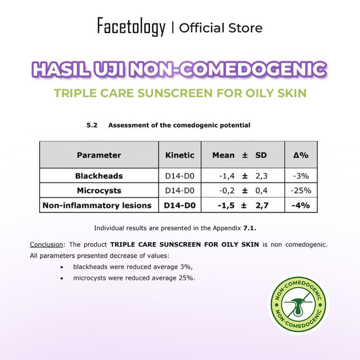 Facetology Triple Care Sunscreen For Acne & Oily Skin SPF 40 PA+++ 100ML - Sunscreen mampu mengontrol minyak tanpa menyu